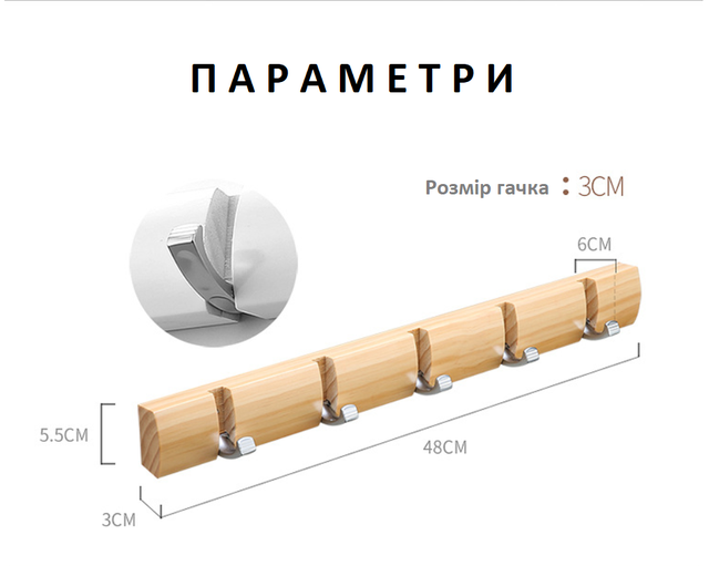 Дерев'яна планка, гачки з цинкового сплаву.